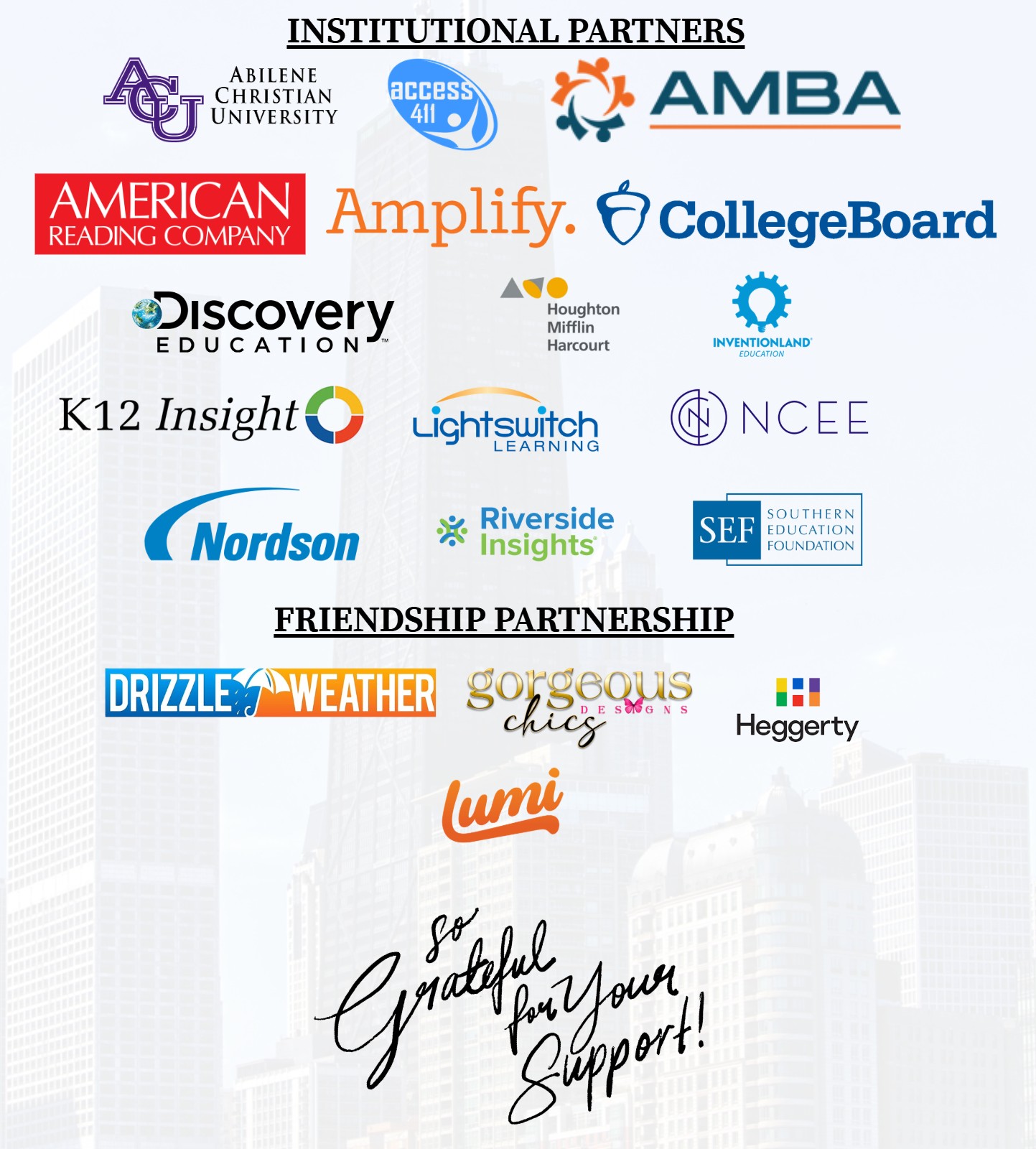 A Special THANK YOU to Our Partners